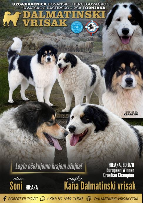 Ako tražite zdravog, lijepog i dobro socijaliziranog tornjak štene, ovo leglo sigurno će ispuniti vaša očekivanja. Rado ćemo pružiti više informacija o roditeljima i štencima.
