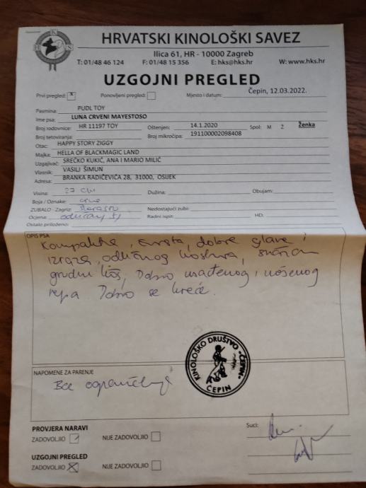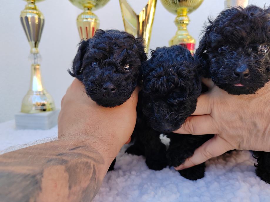 Oglas je trenutno jedini na Njuškalu za Toy Pudle koje imaju Hks rodovnicu. Za dobivanje papira oba roditelja moraju proći uzgojnu dozvolu i biti pregledane od strane Kinologa kako bi utvrdili da se radi o vrhunskim primjercima rase bez izraženih mana. Iz tog razloga je cijena malo veća od oglasa bez jer proces izrade nije jeftin, a rodovnica je najbitnija garancija kvalitete i pouzdanosti pasa. Krzno oba roditelja i štenaca je izrazito crne boje.