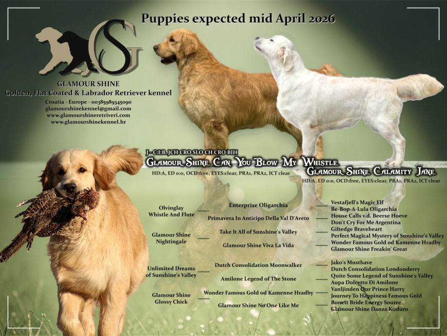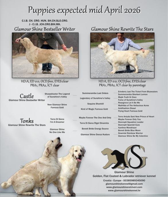 Postoji i mogućnost suvlasništva za žensko štene tijekom 2026. Više o tome na https://www.glamourshineretriveri.com/suvlasnistvo