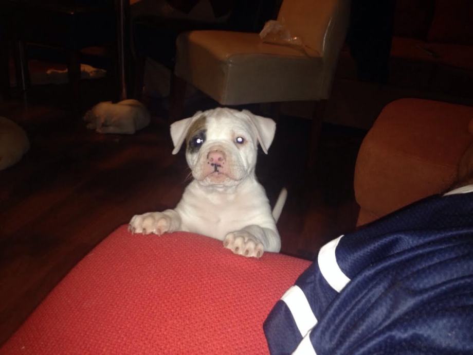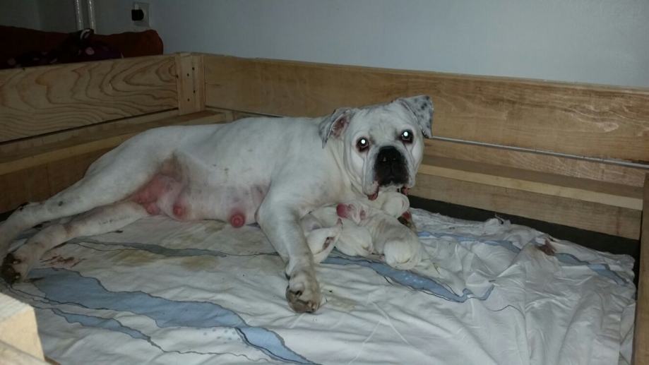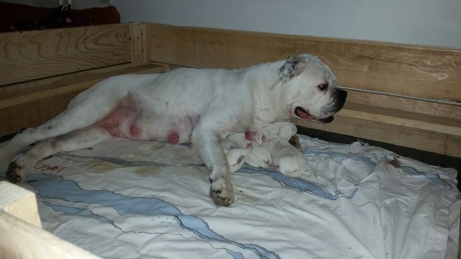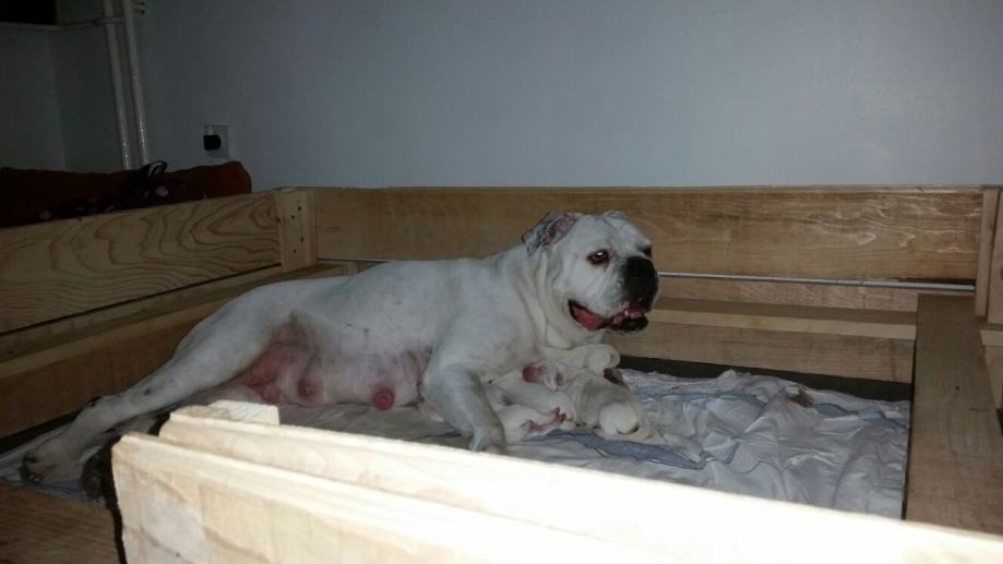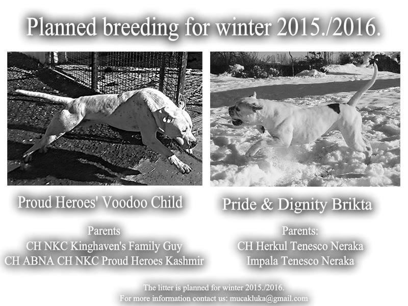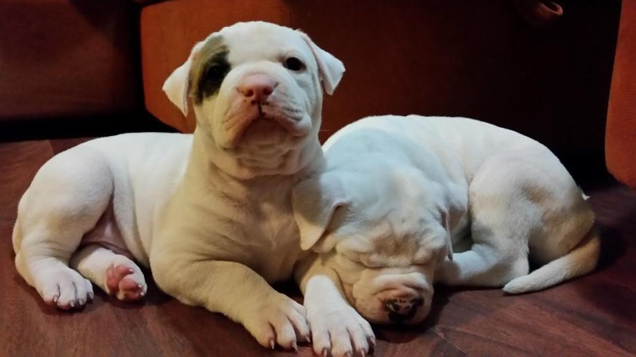 Muško štene 2 mjeseca čistokrvni američki bulldog sa urednim papirima priznate organizacije za američke buldoge okoceno 5.12.2015., između Proud Heroes' Voodoo Child (CH NKC Kinghaven's Family Guy X CH ABNA CH NKC Proud Heroes Kashmir) i Brikta Pride & Dignity (CH Herkul Tenesco Neraka X Impala Tenesco Neraka). Pedigree za štene će biti izvađen u jednoj od priznatih organizacija za američke buldoge (ARF ili NKC). Više informacija možete dobiti putem e-mail adrese mucakluka@gmail.com ili putem mobitela: 099 700 6084.