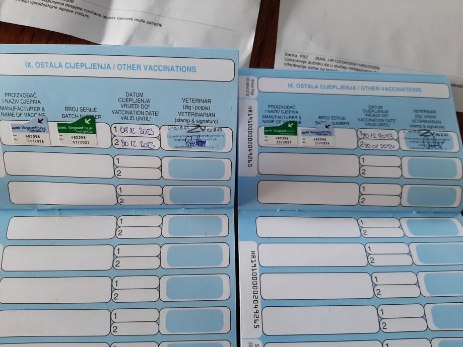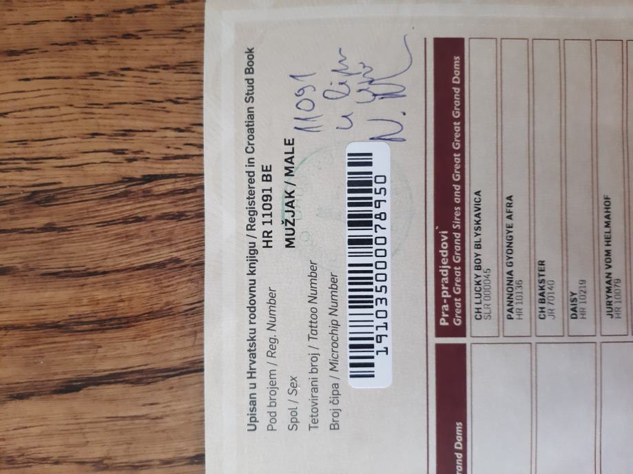 Tata štenaca posjeduje sve papire koji su u prilogu. Oba roditelja su u našem vlasništvu, te se uvijek mogu vidjeti. Štenci će po preuzimanju biti očišćeni od unutarnjih i vanjskih parazita prema protokolu veterinara, te cijepljeni sa prilogom računa veterinara i EU putovnicom. Također čipirani.