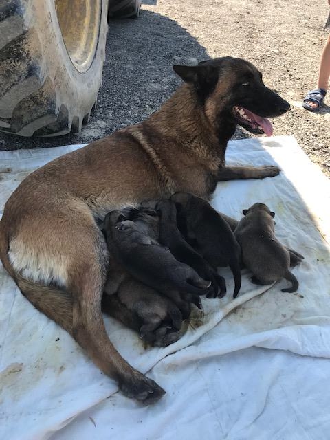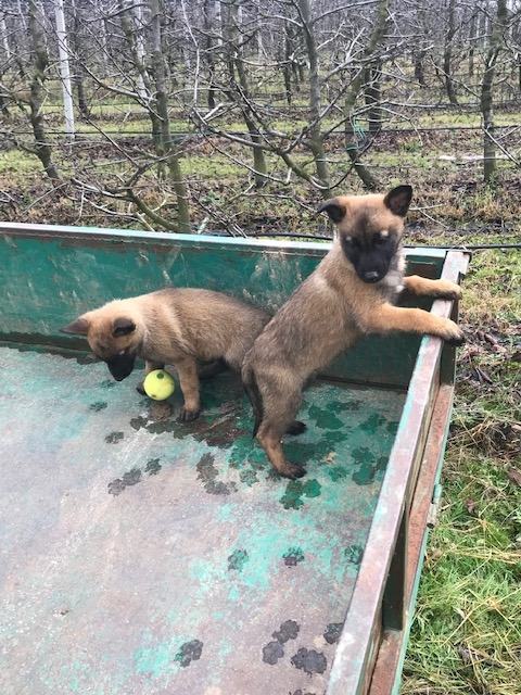 Belgijski ovčar –Mallinois štenci, oštenjeni 03.10, . Nemaju rodovnik. Mama porijeklo od policijskih pasa, tamnije pigmentacije, pametna, vrlo poslušna, dobar čuvar, dobra sa djecom. Otac svjetliji, dobar čuvar, socijalizirani. Roditelji rade na čuvanju voćnjaka sa gospodarskom zgradom prostora 8 ha. U svakom trenutku jedan obilazi voćnjak dok drugi pas ostaje kod gosp. zgrade. Njih dvoje sami uspješno čuvaju 80.000 m2. Vjerni vlasniku, 1 radniku i djeci od vlasnika. Psi su cijepljeni, očišćeni od crijevnih nametnika i sve potrebno. Ostala još 1 cura. Nove slike uskoro...
