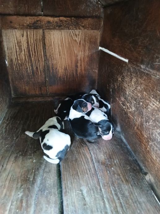 Psići su oštenjeni 26.5., roditelji služe kao psi za lov a mogu i biti kućni ljubimci. Za više informacija nazvati na broj ili porukom se javiti.