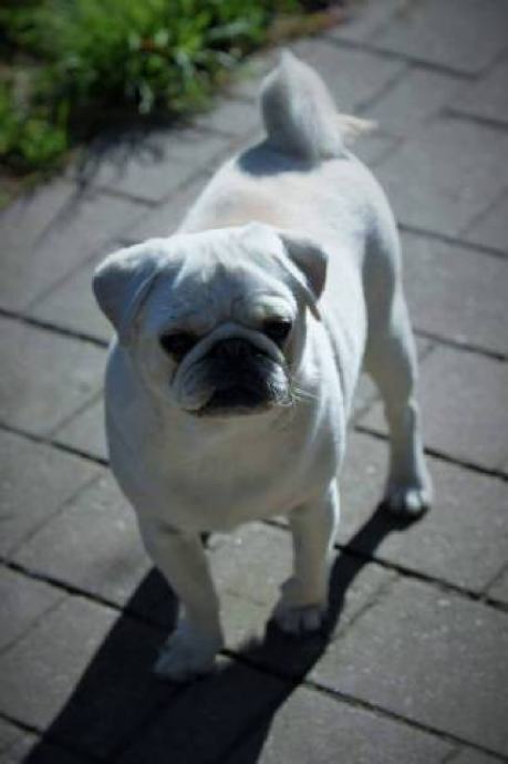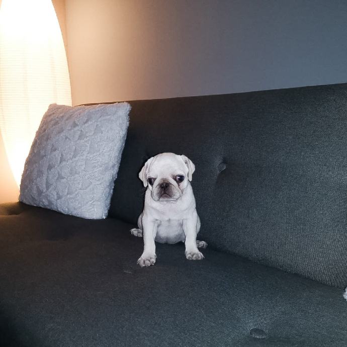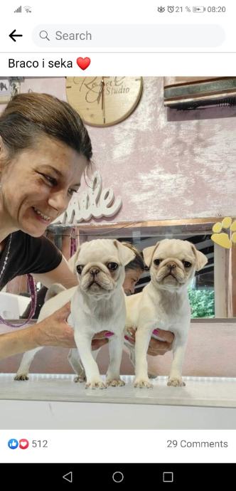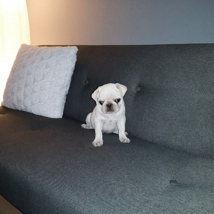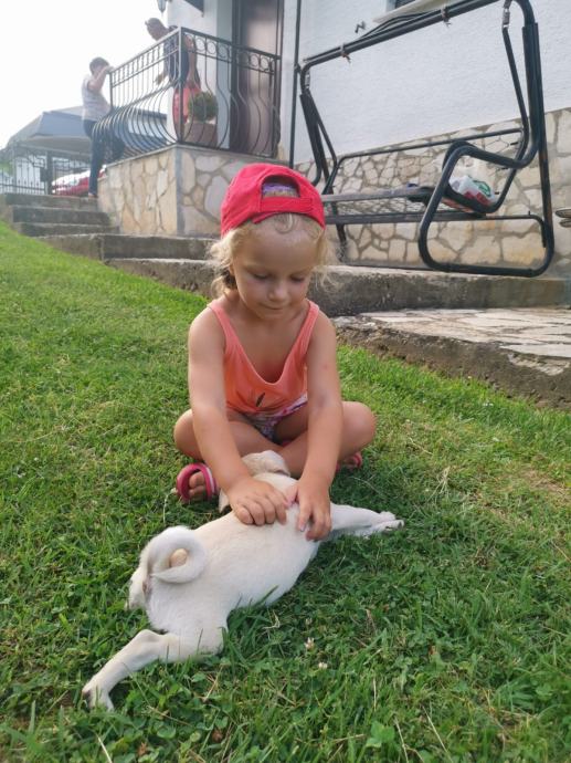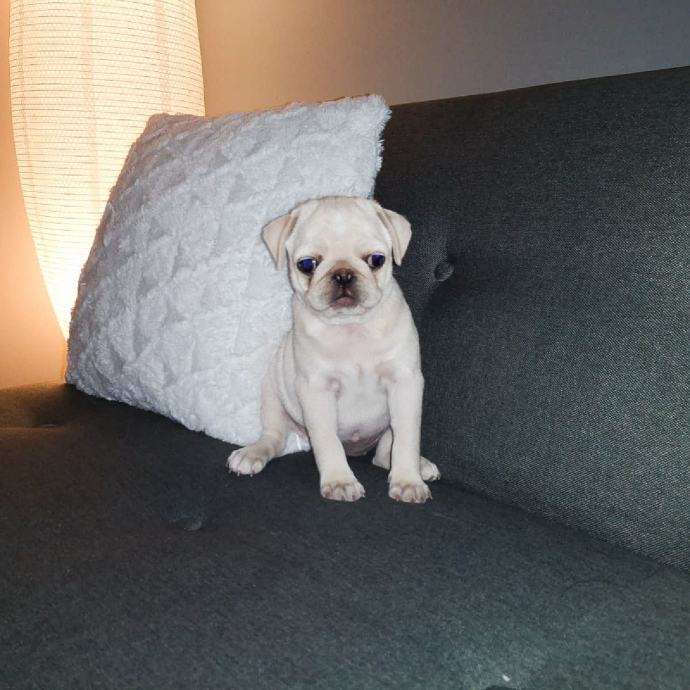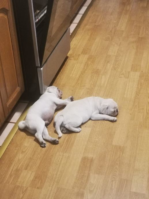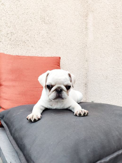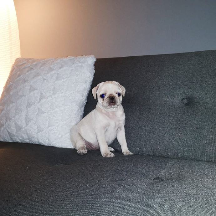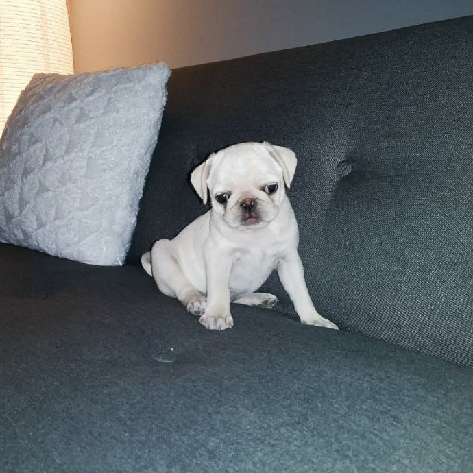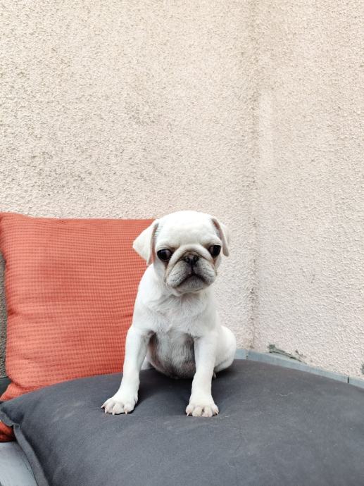 Štenci bijelog (krem) mopsa prvi puta u Hr. Vrlo rijetki i predivni štenci mopsa iz Slovačkih linija. 1 dečko i 1 cura