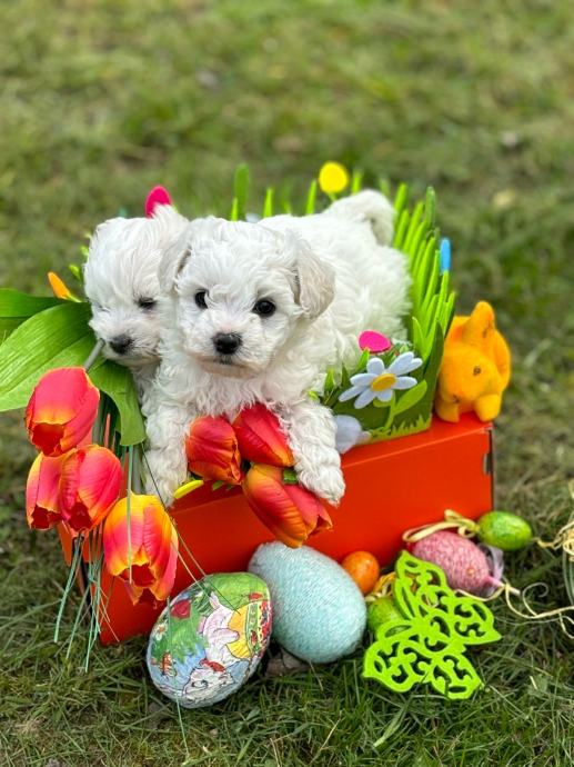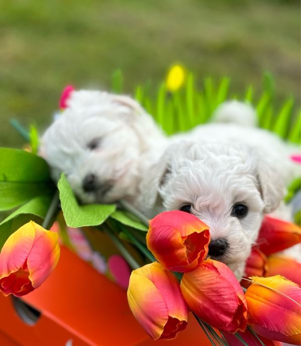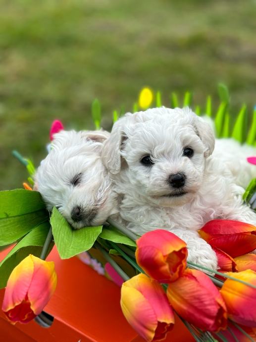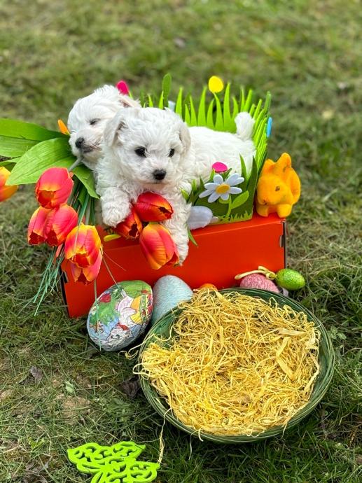 Stenci čistokrvnog kovrdjavog Bisona ,ostenjeni 03.04.2025. Psi su spremni za novi dom krajem svibnja. Uredno cisceni od parazita te cjepljeni.Izuzetno ljubavni, topli, razigrani veseli psi .
