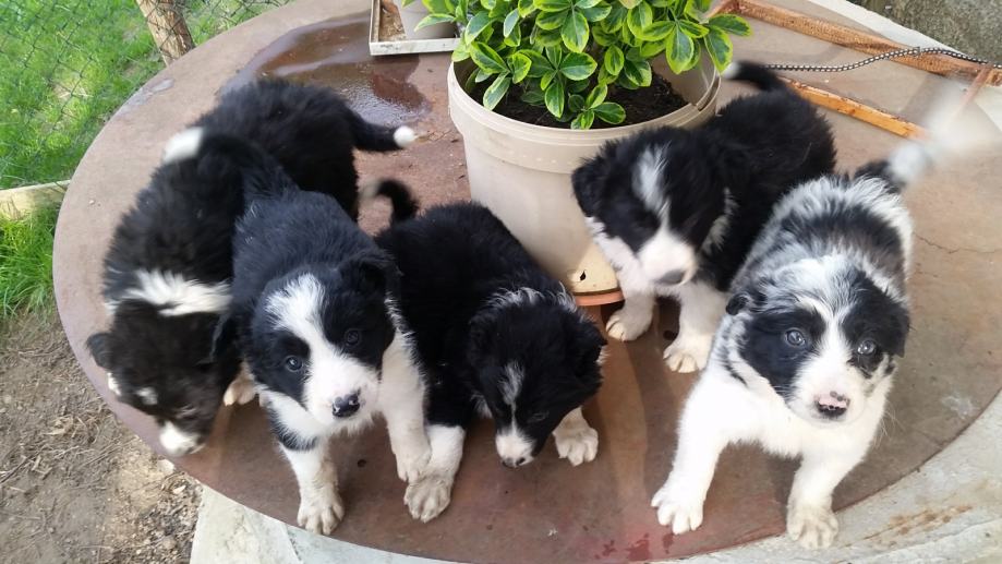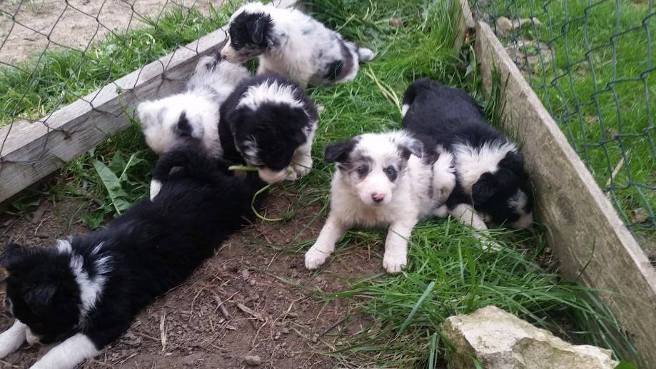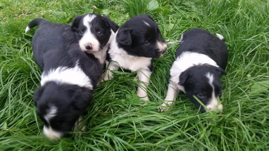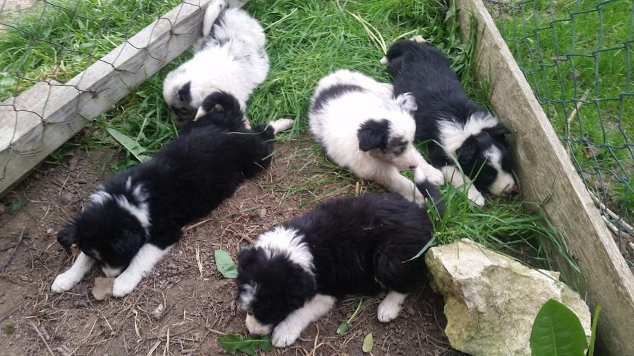 Prodaje se čistokrvna štenad pasmine Border collie iz dva legla, starosti jedan i dva mjeseca. Roditelji radni psi odlični u radu sa ovcama. Na prodaju je i majka štenaca (zadnja slika). Cijena štenadi je 1000kn a kuje 3000kn. Moguća dostava.