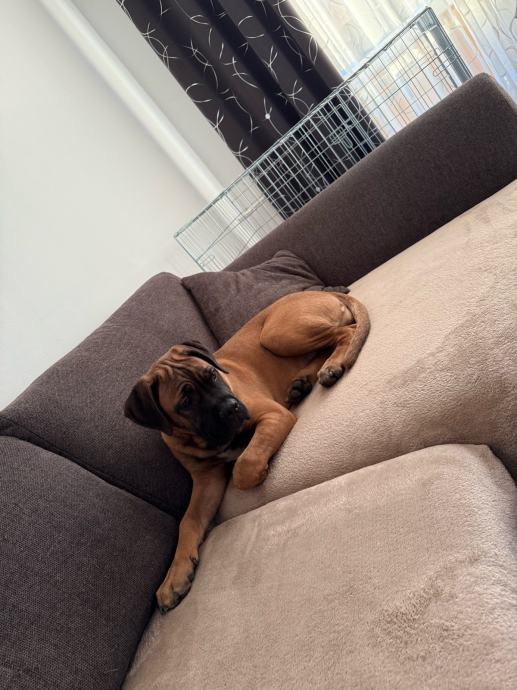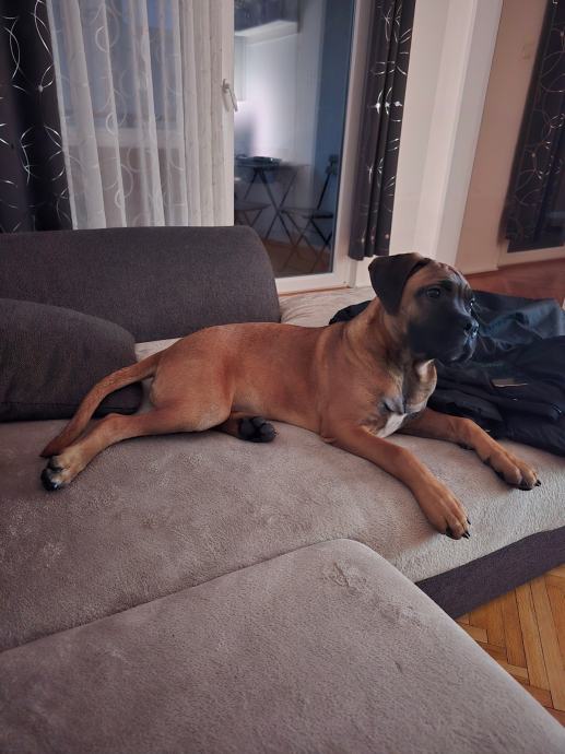 Stene je lijepe krupne grade i izuzetno bogate smedo bakrene boje, nauceno je na zivot u stanu te lijepo seta na povodcu.