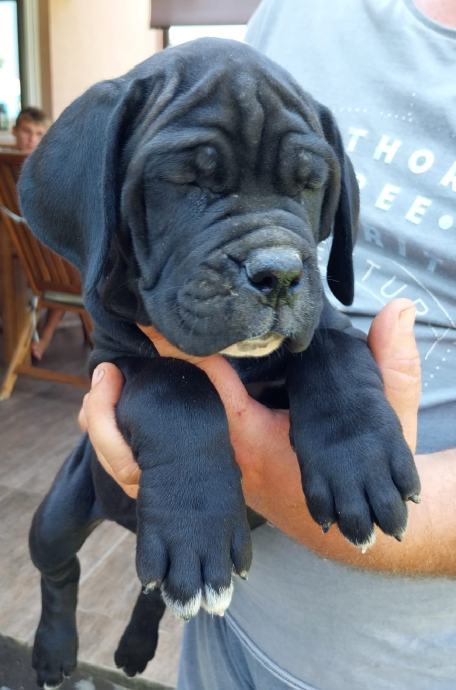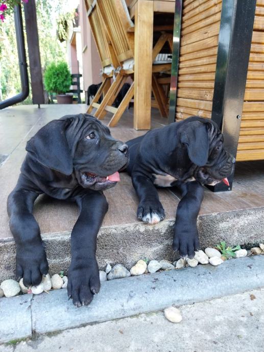 Cane corso štenci oštenjeni 16.06.2023. Imamo dostupno 5 dečka i 2 cure. Psići su očišćeni od svih parazita i cijepljeni protiv štenečaka. Svi su crne boje. Roditelji su naši ljubimci pa ih oboje možete vidjeti. Oboje su vrhunski psi i prekrasni ,može se i na slikama vidjeti. Psići su krupne građe, umiljati, veseli, razigrani. Puno vremena provodimo s njima u igri i učenju.