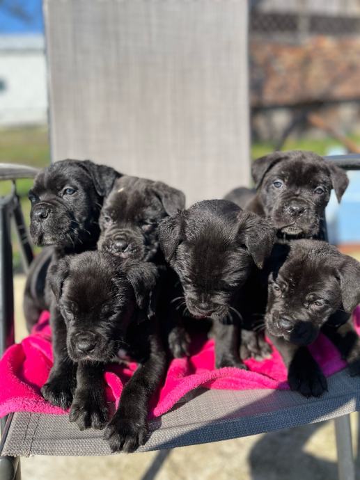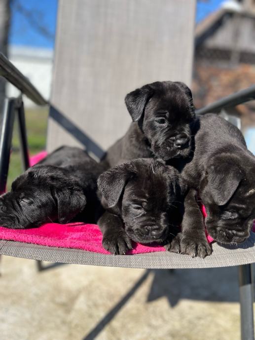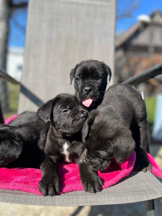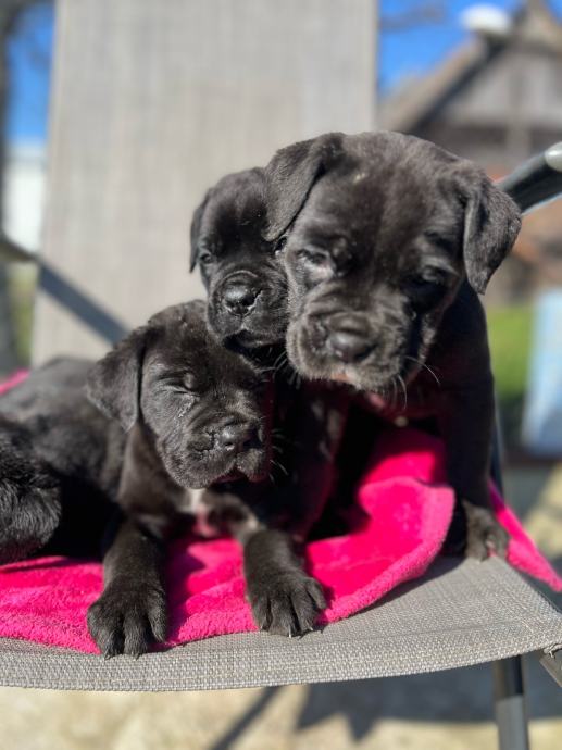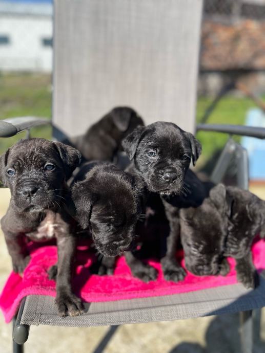 Cane corso stenci predivne male buhtle. Mama bez rodovnice, tata ima rodovnicu. Peseki su mamici drugo leglo, te zadnje leglo! Kontrolirani uzgoj te je registriran uzgoj! Mama je lijepa velika i krupna zenka, izrazito divnog karaktera, vrlo dobar cuvar, a sa djecom i ostalim psima je njezna! Tata je jako veliki i lijep primjerak cane corsa. Trazimo im nove domove iskljucivo bez lanaca, kojekakvih boxeva, šupa i slicno! To su psi koji jako vole prisutnost vlasnika, ne vole biti odvojeni niti sami, a niti ne mogu biti vani po velikim vrucinama a jos manje po zimi! Mamu i stence hranimo sa superpremium hranom Royal Canin.
