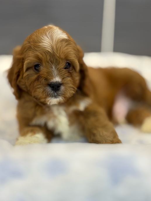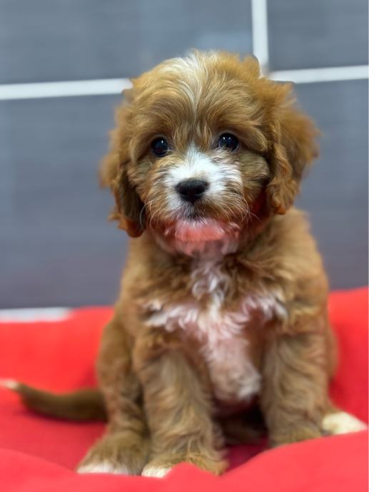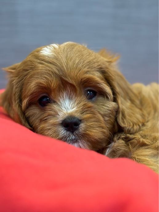 Otac naših CAVAPOO je ni manje, ni više već TOY POODLE koja potječe od vrhunskih, šampionskih krvnih linija, redovito izlaganih i nagrađivanih roditelja sa zdravstvenim i genetskim testovima iz globalno poznate, brendirane i uvažene Ukrajinske uzgajivačnice Alma Unica, crvene boje sa 24cm u grebenu i 1900 grama težine, također on je i otac svih naših MALTIPOO.