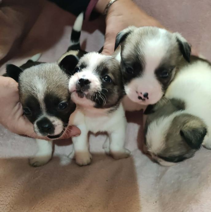 Prekrasno leglo chicuahie vs mini maltrzer, stari 7 tjedana navikli na pse i djecu