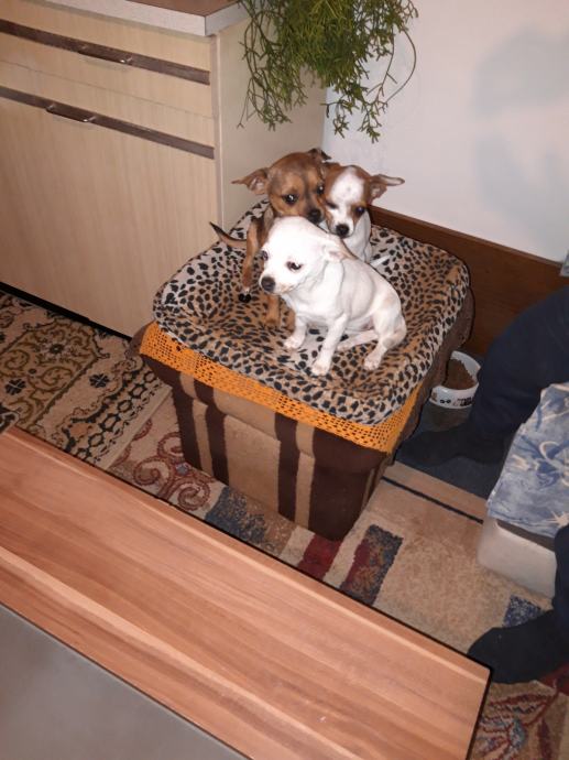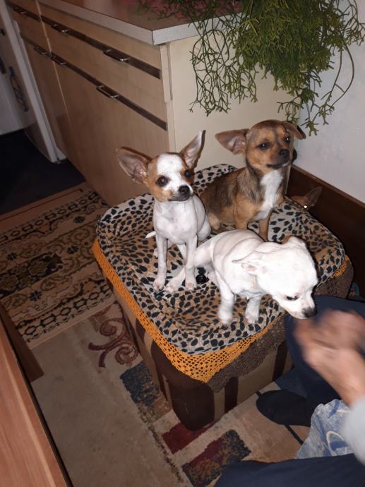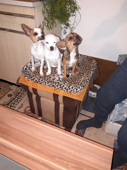 Na prodaju štenad čivave stari tri i pol mjeseca jedna ženka dva muška.Umiljati razigrani očisćeni od parazita.Cijena 1600 kuna.Na prodaju je i mužjak star godinu i sedam mjeseci cjepit čipiran sa putovnicom. Po dogovoru spreman i za parenje,cijena 2000 kuna.Zvati iskljucivo na 098 564 160