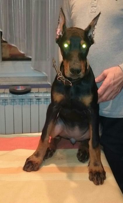 Žensko štene staro 3 mjeseca vrhunskog rodovnika kupiranog repa i ušiju,kompletno cijepljeno i čipirano.