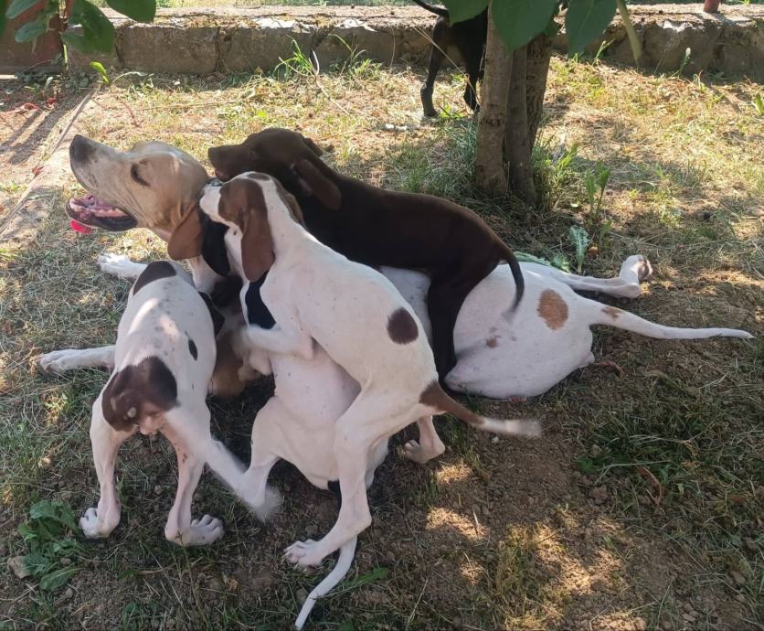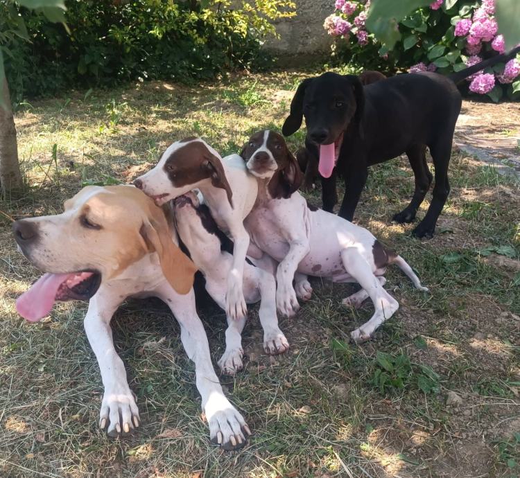 Štenci pointera stari dva mjeseca , cijepljene i očišćene od crijevnih nametnika od radnih roditelja , zdravi , veseli i zaigrani spremni za odlazak u novi dom .Roditelji se koriste u radu , lov, tartufi . Moguća dostava po dogovoru.