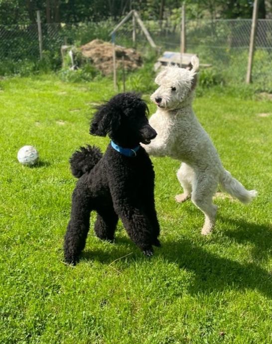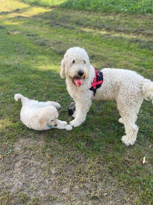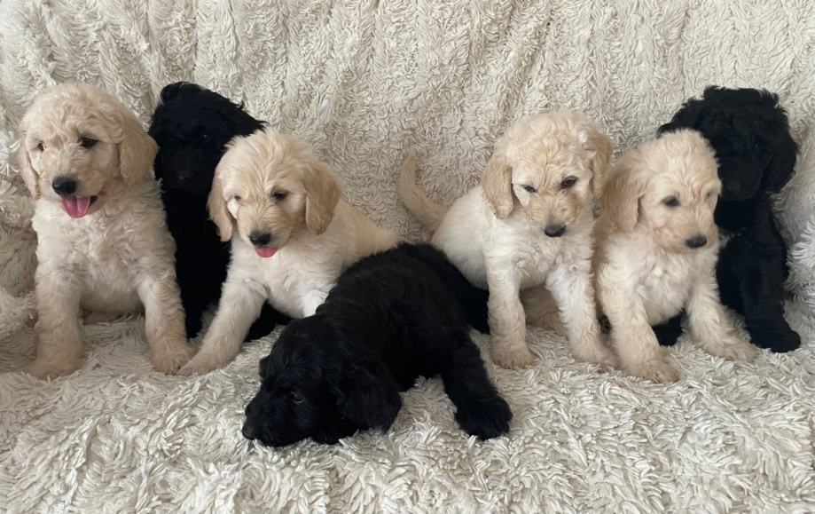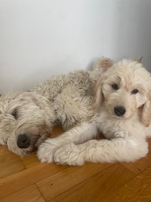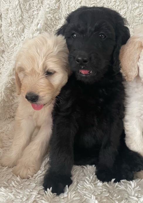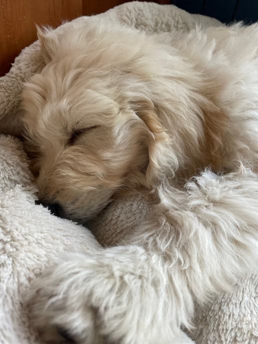 Goldendoodle F1B štenac je krem boje, srednje veličine bijele, okoćen 06.07.2023.