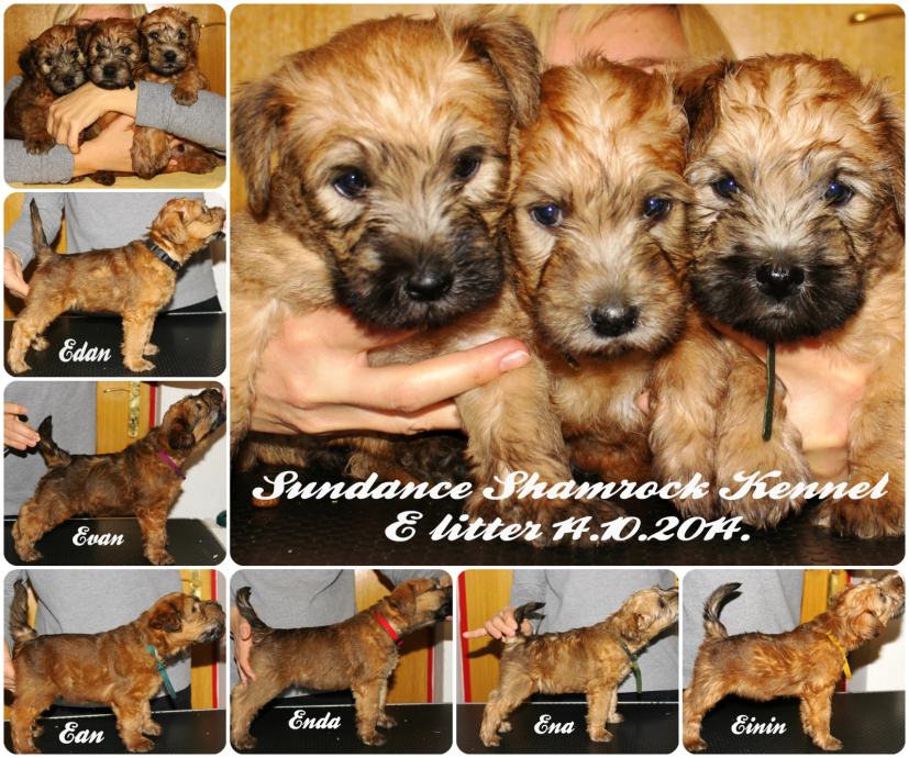Barney i Leia su prekrasni primjerci Irskog mekodlakog pšeničnog terijera, pasmine poznate po svojoj mekanoj, valovitoj dlaci pšenične boje i tamnim, bademastim, ljubopitivim očima. Dobroćudnog i razigranog karaktera, pasminu odlikuje njihova izvanredna privrženost obitelji i djeci te sklonost vanjskim aktivnostima. Ovi psi se ne linjaju i nemaju mirisa pa zbog toga čine odličnog kućnog ljubimca ljudima sklonim alergijama i bolestima dišnog sustava. Štenci su cijepljeni, mikročipirani i očišćeni od parazita te spremni za novi dom. Ukoliko mislite da predstavnik ove pasmine može biti Vaš novi najbolji prijatelj sve informacije dostupne su na telefon (091) 22 49 305 ili (031) 58 21 51, na e-mail adresu: idurkin@pfos.hr ili na web stranici http://www.sundanceshamrock-kennel.com/index.php.