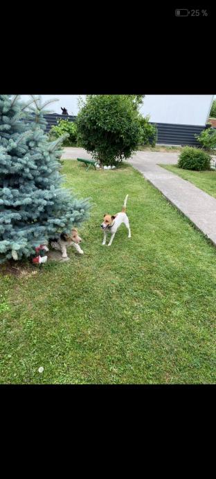 Čistokrvnu Fox terrier ženku, staru 9 mjeseci, sva cjepiva primila, porijeklo Njemačka, dobre naravi, voli šetnje, perspektivna. Cijena 350 eura.