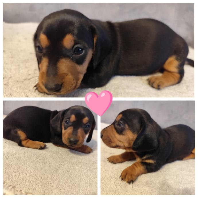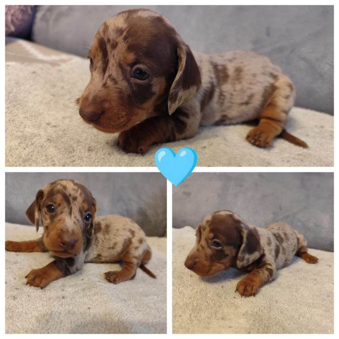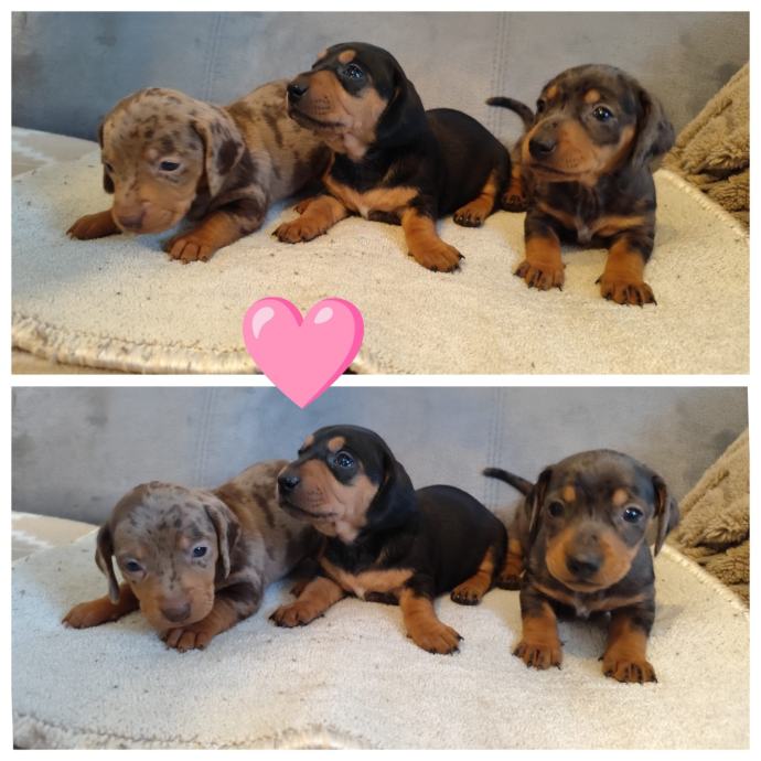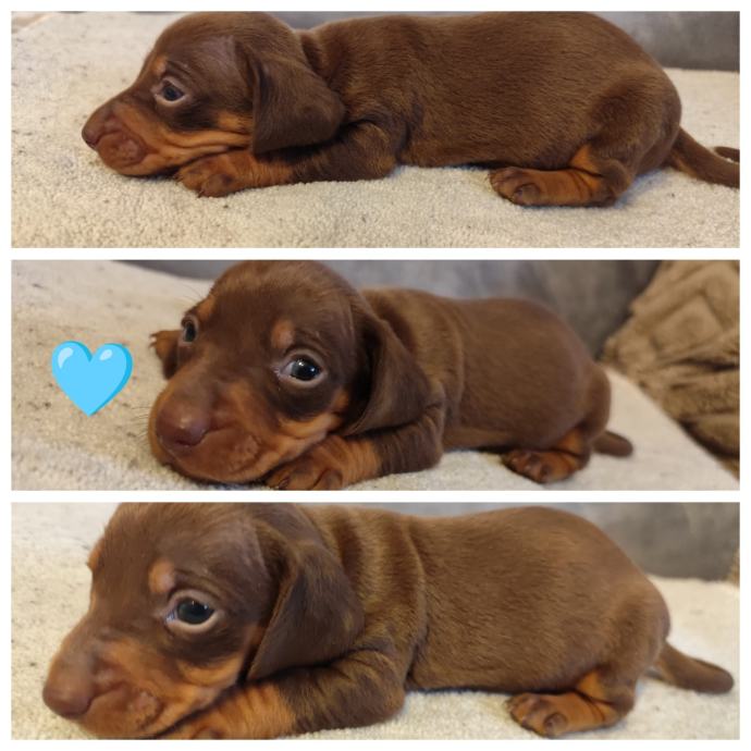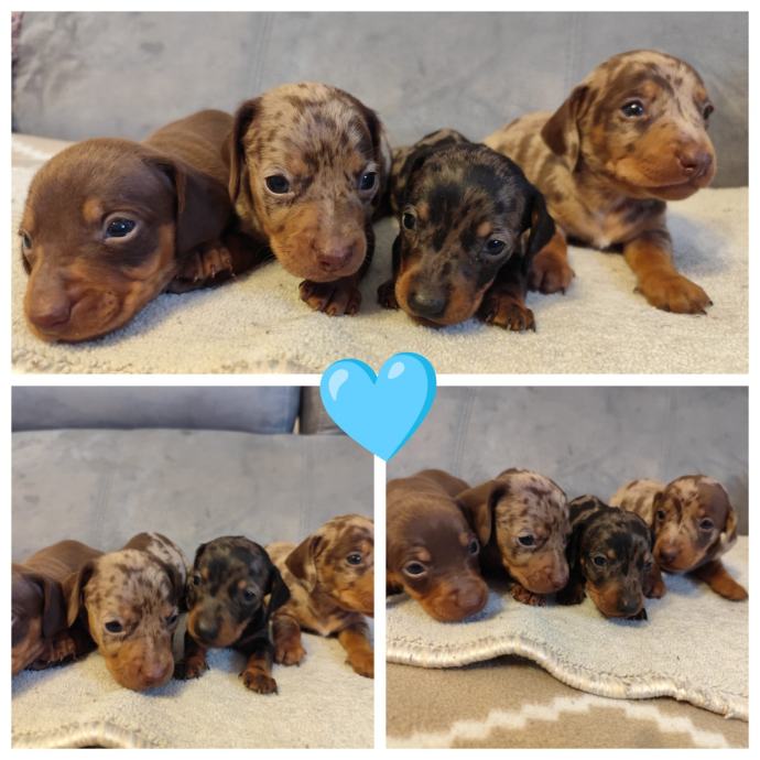 Štenci patuljasti jazavčar kratkodlaki (mini) okočeni 16.11.2025. god. u leglu 3 ženke i 4 mužijaka.