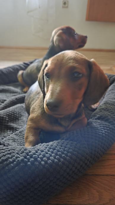 Jazavcari na prodaju. Standard kratkodlaki jazavcari. Oboje su smeđi i muški su. Stenici su ocisceni od glista i parazita. Starosti 2,5 mjeseca.