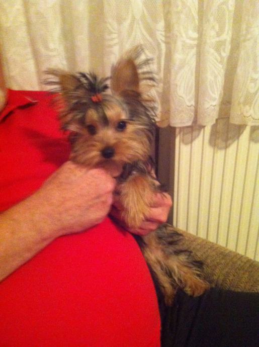 Prodajemo kujice mini jorkširskog terijera, ostala je još samo jedna slatkica. Iz domaćeg su uzgoja i oštenjene su 02.04.2018. Kujica je obavila sva cjepljenja, očišćena je od parazita, čipirana je te ima putovnicu. Mama je silver i ima 1.7kg, a tata je nesto tamniji i on teži 1,6kg, oba su čistokrvna. Psiće prodajemo samo u dobre ruke!