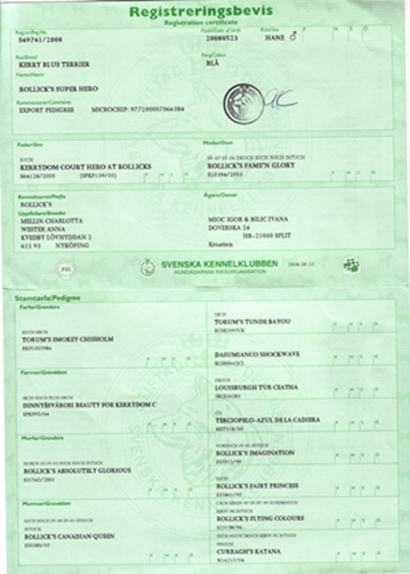 Otac štenaca: Rollick s Super Hero: International Champion, FCI centenary Champion, World Winner 2011, res Word Winner 2012, European Winner 2011, European Winner 2012 & BOG, Crufts 2012 CC dog, AKC Eukanuba National Winner 2011 & BOB.