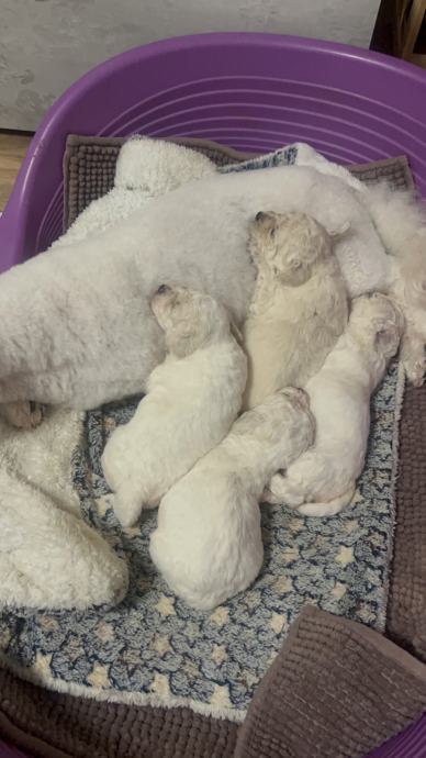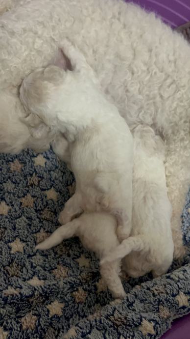 Na prodaju štenci kovrčavog bišona. Za 3 tjedna spremni su za novi dom! Bit će čipirani, cijepljeni i imati putovnicu. Dostupne su dvije ženke i dva mužjaka. Na zadnjim slikama su im tata, mama i sestra iz prvog legla. Sve informacije na broj: 0997773498