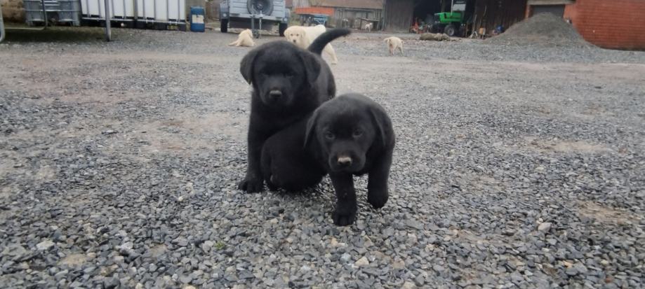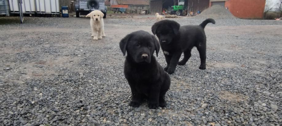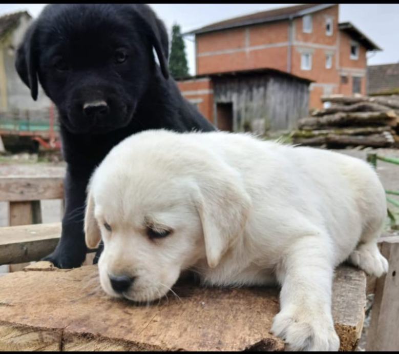 Labrador štenci stari 3 mjeseca ,crni dečko i 2 bijele cure. Roditelji su u našem vlasništvu.