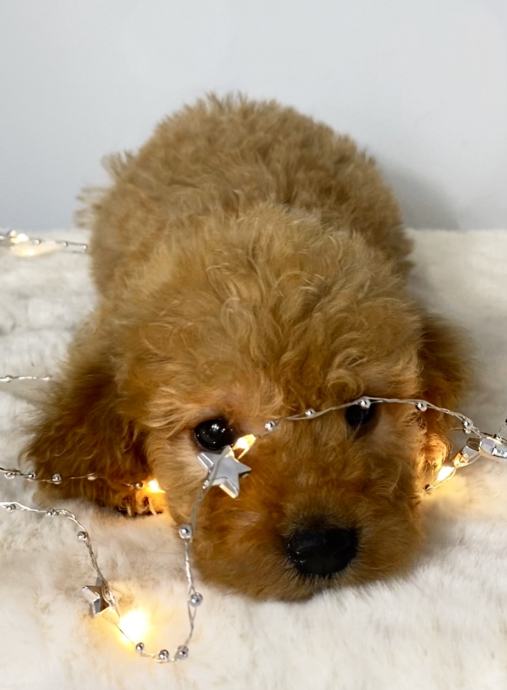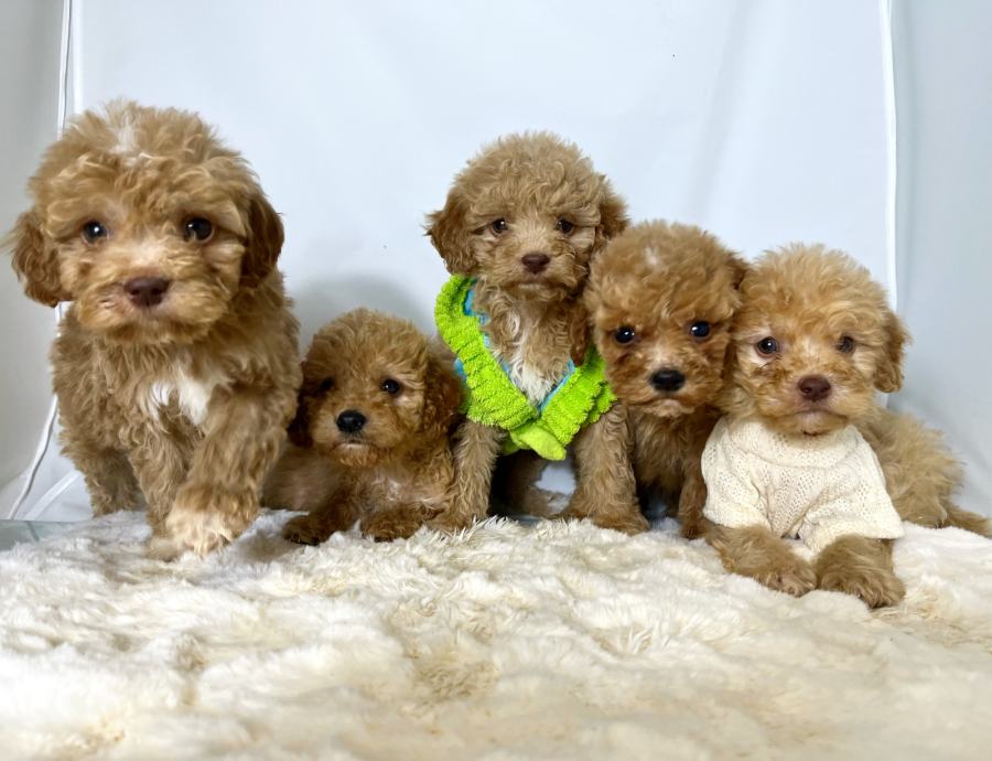 Labradoodle mužjaci i ženka, u pitanju je rasa nastala selektovanim uzgojem čistokrvnih labardor retrivera i patuljaste pudle.