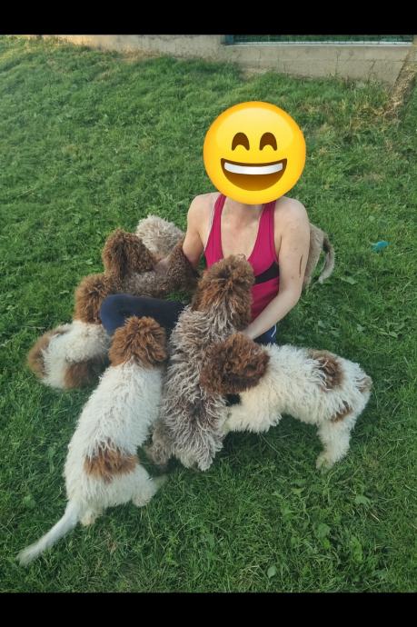 Teška srca, ali s puno nade, odlučili smo se rastati od naših Lagottića starih 6 mjeseci (na slici su kada su bili oko 4 mj.). Zadržali smo ih s idejom da ih dresiramo za traženje tartufa, ali život nas je podsjetio da dan ima samo 24 sata, a oni imaju energije kao da dan traje 48. Ukratko — nisu došli do tartufa, ali su zato postali vrhunski kućni maznici i izvođači “trči, skoči, pojedi”.