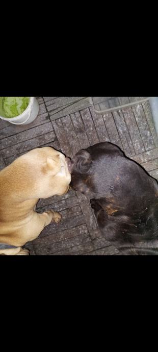 Najava novog legla. Na raspolaganju ženkica i muškić. Crne su boje sa tzv bijelom kravato. Ispod vrata.