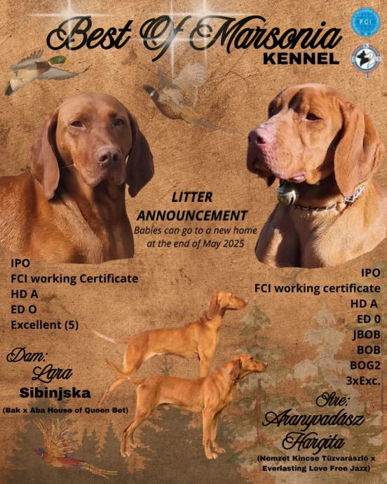 S velikim veseljem obavještavamo da su 17.03.2025. na svijet stigli štenci kratkodlake mađarske vižle iz pažljivo birane kombinacije radnih roditelja.