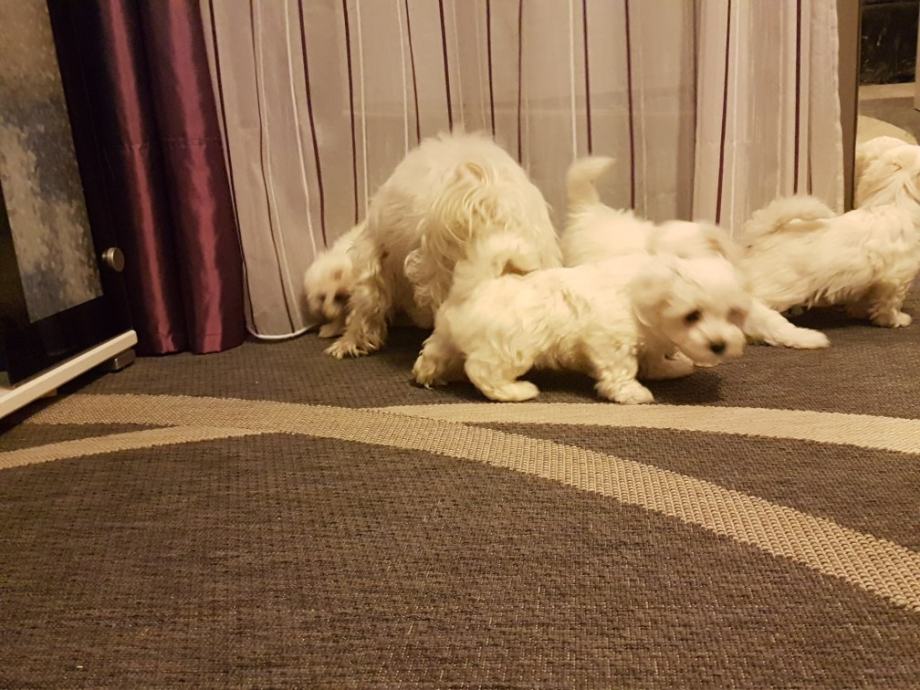 Prodajem čistokrvne maltezere. Tri muška i jedno žensko štene. Psi su očišćeni od parazita. Za sve ostalo oko cijepljenja i čipiranja moguć dogovor. Okoćeni 9.12.2018. Spremni za novi dom.