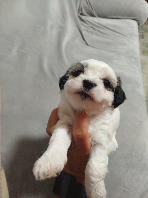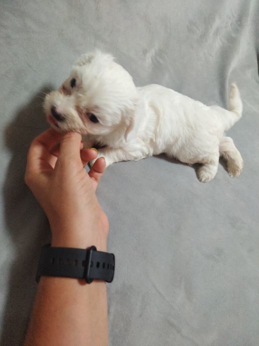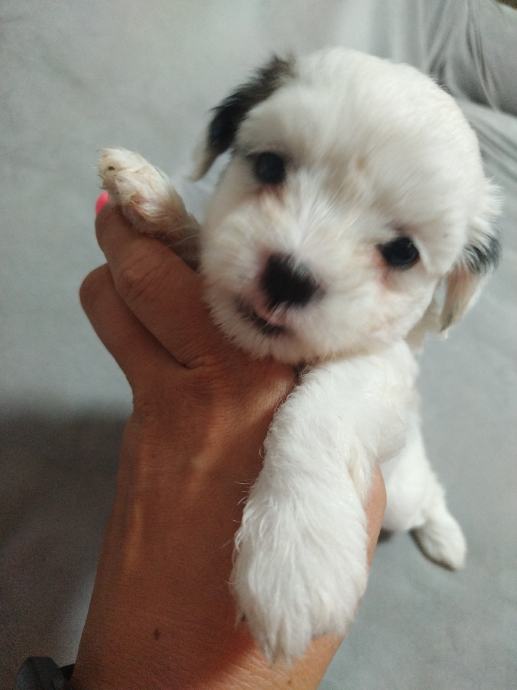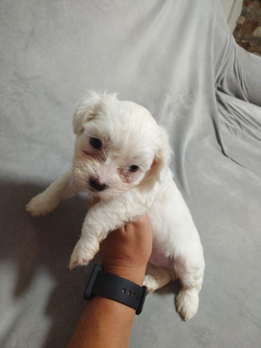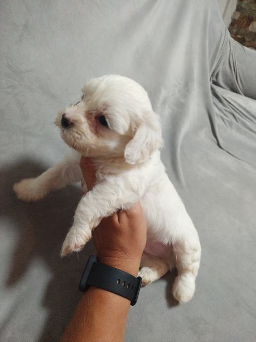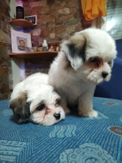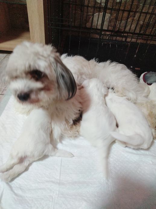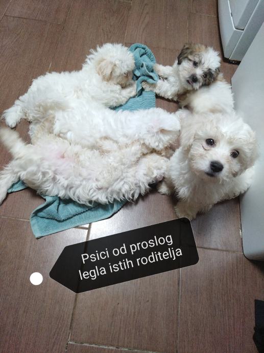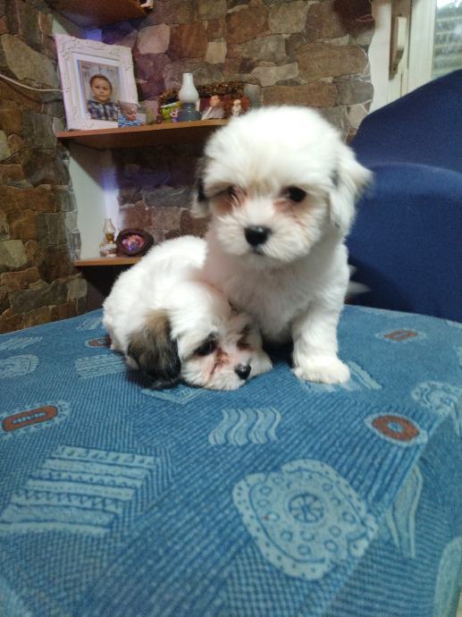 Mama mjesanka maltezera-pekinezera, otac je cistokrvni maltezer, stenci ostenjeni 10.6, dostupne jos dvije zenkice sa smedim flekicama, psici su nauceni na prostirku vrsit nuzdu te su vrlo privrženi djeci, samostalno jedu majka i psici sa prijašnjih legla su na slikama, ocisceni od parazita i vrlo privrženi djeci