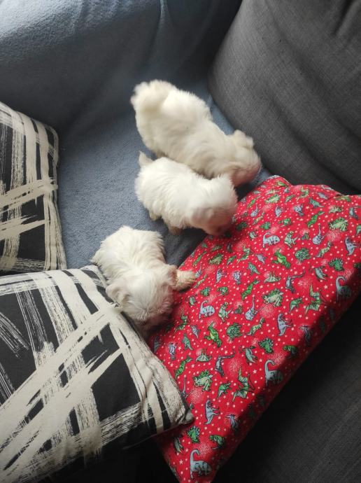Prodajem preslatke čistokrvne štence maltezera. Oštenjeni 15.08.2025 zdravi i očiščeni od parazita te su spremni za novi dom pun ljubavi, jedna curka i dva dečka. Naš uzgoj, mogu se vidjeti i roditelji! Moguća dostava uz dogovor(u okolici samobora)! Oglas iz usluge!! Zvati na 0996882757 ili poslat sms