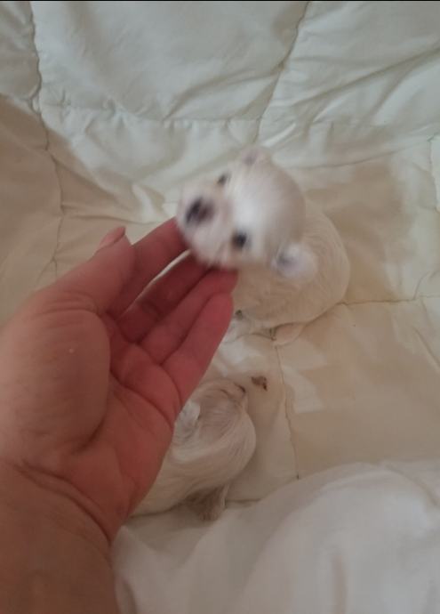 Čistokrvni štenci maltezera,od jako sitnih roditelja.Slobodan jedan vrlo sitan dečkić oštenjen 7.05.2023.Posjedujem oba roditelja mama 1.8kg tata 1.6kg.Spremni za preuzimanje