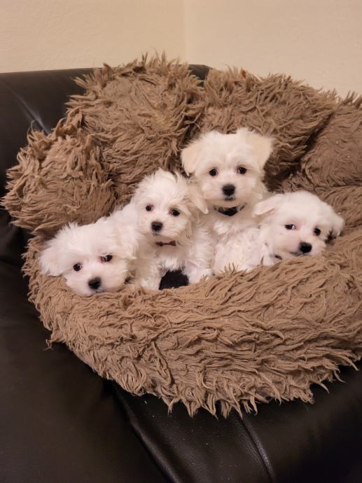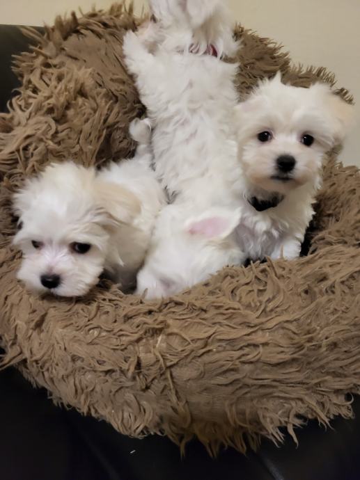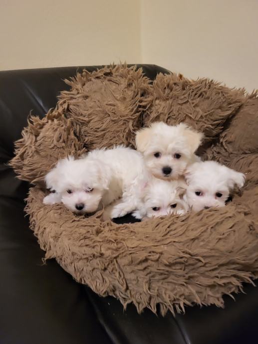 Prodajem štence maltezera,stari 2 mjeseca,nauceni na suhu hranu,očišćeni od parazita,u cijenu uključeno čipiranje,knjižica,EU putovnica,jedno cjepivo i prijenos vlasništva,dostupni ODMAH,cijena 550 eura,097/757 96 81