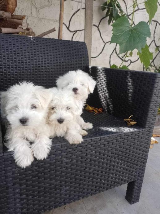Prekrasni mini stenci maltezera, Oštenjeni prije dva mjeseca, očiščeni od parazita dva puta ,spremni za preuzimanje odmah, cijepljeni, vrlo razigrani, dostupan jedan mužjak i ženka, za vise info slobodno se javite na 097/611-9611 ili 032/560-540.