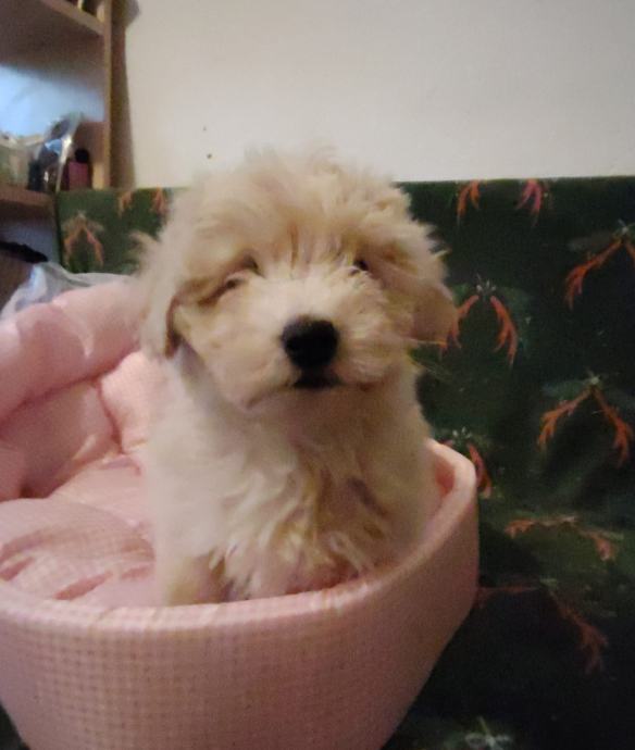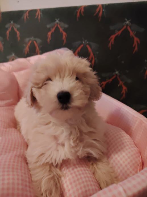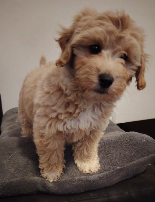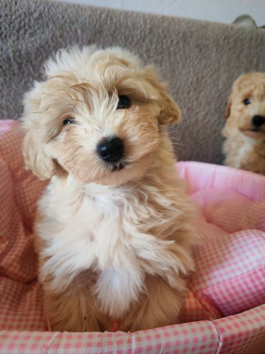 Prelijepi štenci maltipoo krem boje 1 ženkica i 2 dečka. Stari 2,5 mj. Cjepljeni čipirani s Eu pass koji se prenosi na vas uz 35 e dodatnog plaćanja. Zdravi. Registrirani uzgoj u RH. F1 geberavjhe. Majka mini dimenzije maltezer otac toy pudla crvene boje i vlasništvu.