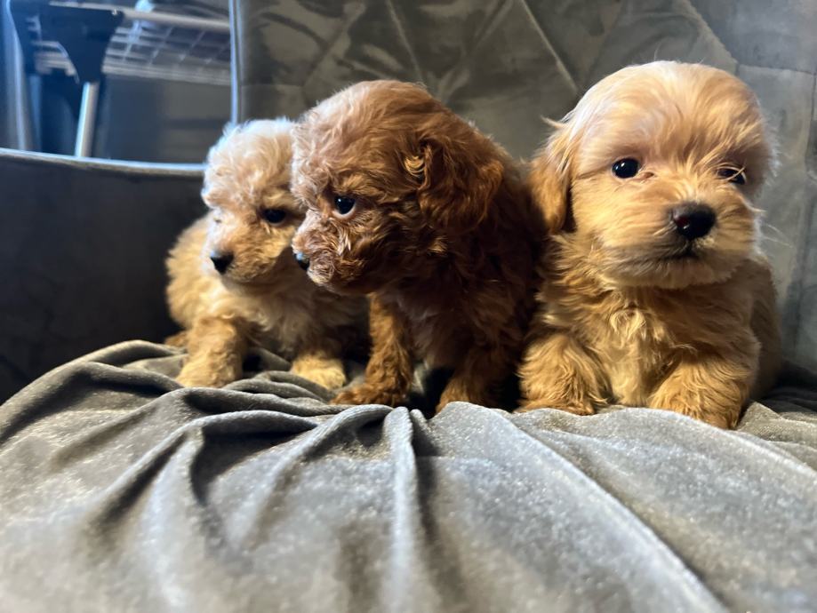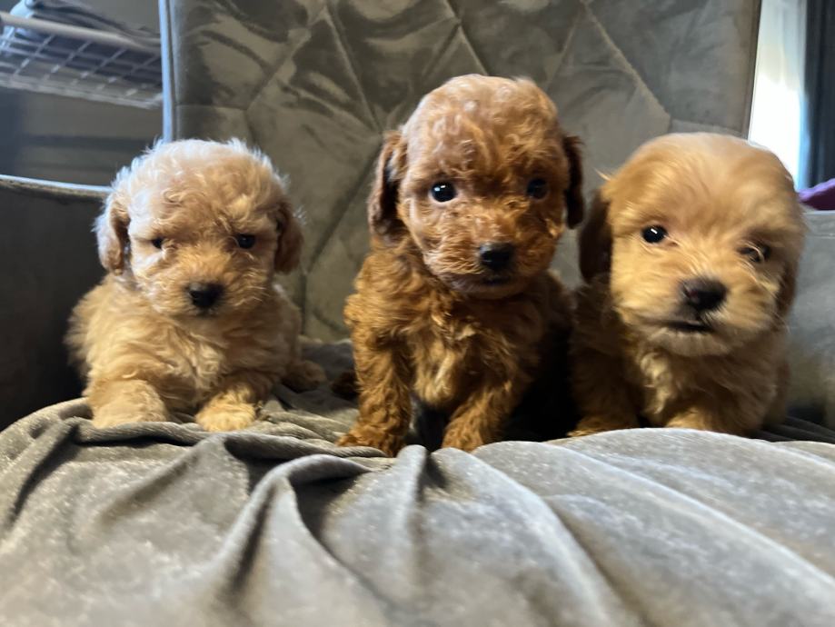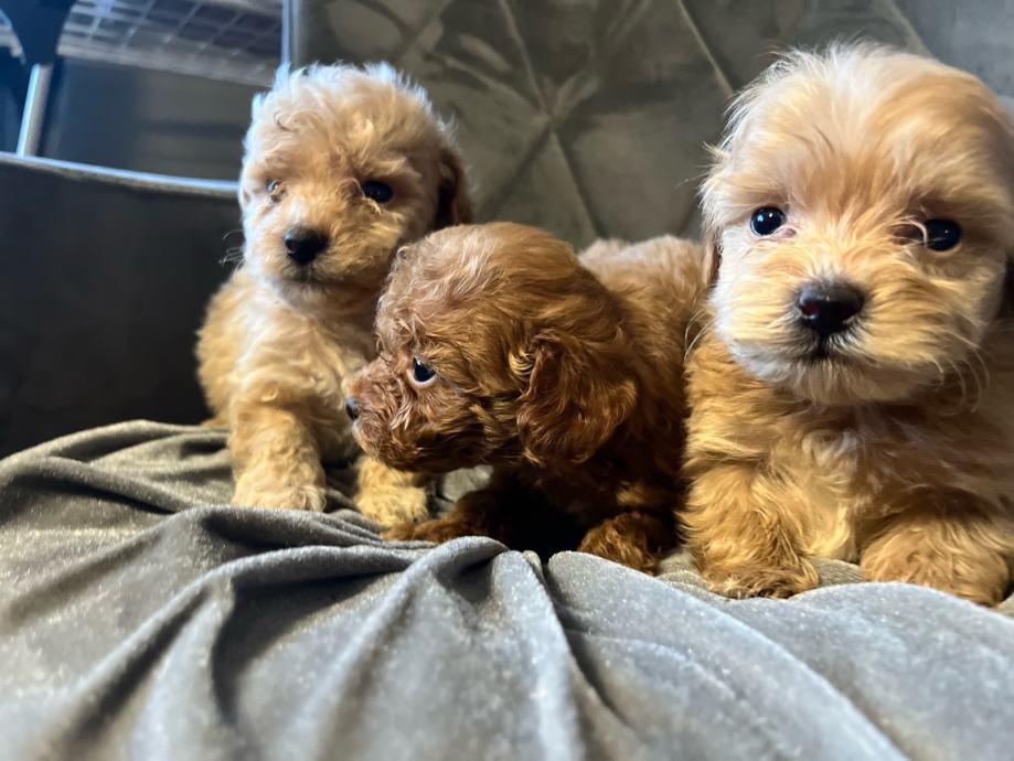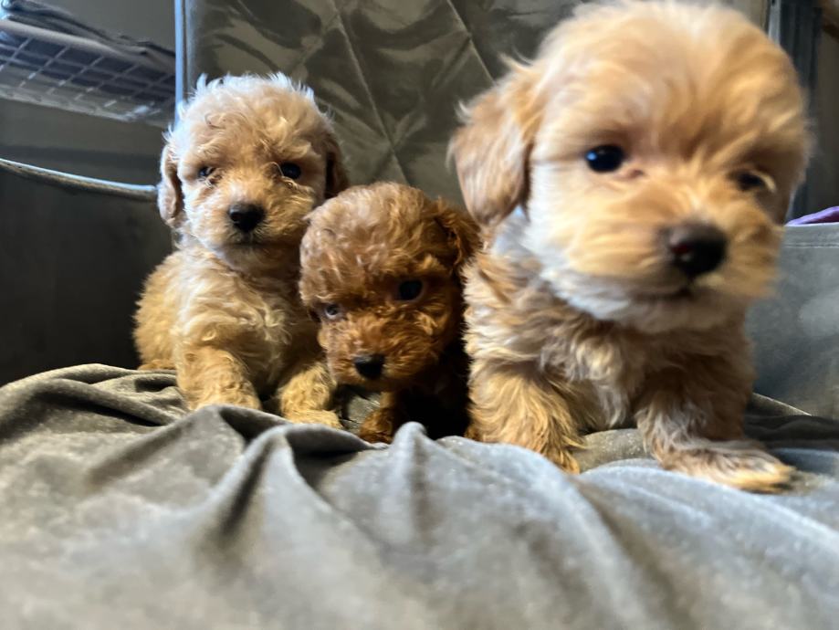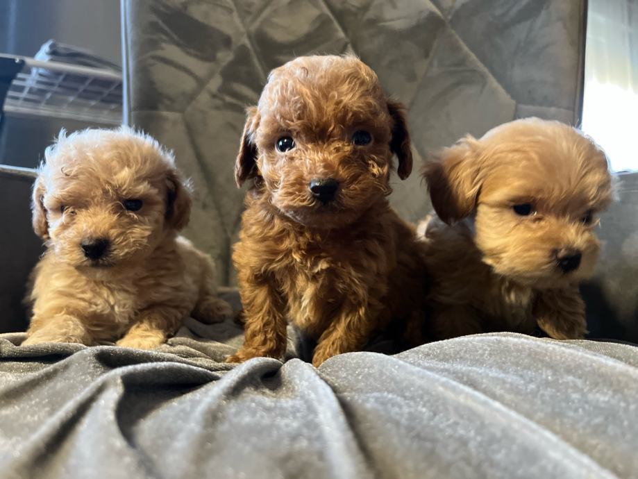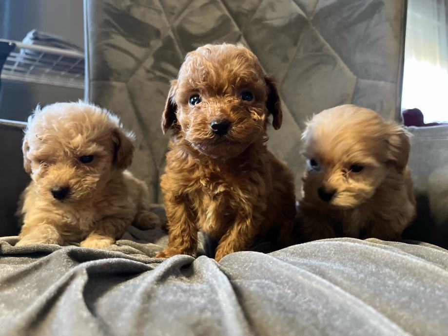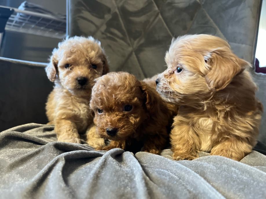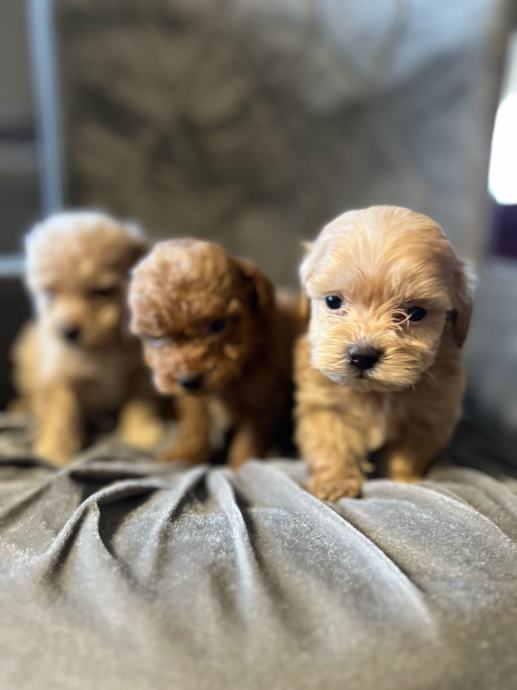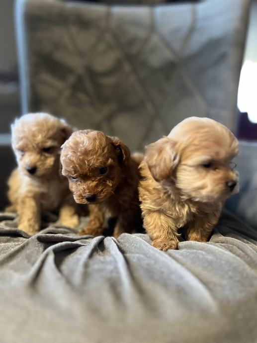 Maltipoo štenci F2 generacija (mama je maltipoo a tata crveni toy pudl). Štenci su iz kontroliranog uzgoja, mami je prvo leglo, registriran uzgoj imamo. Mama teži svega 2,5 kg a tata je toy pudla 4 kg i 26 cm visine.