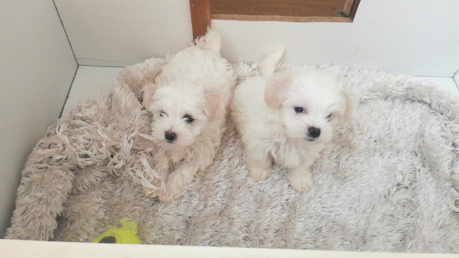 Prodajem čistokrvno muško štene mini maltezera. Vlasnici smo oba roditelja koji su naši kućni ljubimci. Lijep, zdrav, zaigran i učen na kućne uvjete. Čišćen od parazita i kontrolirani od veterinara u više navrata za što predočimo račune. Psić je čipiran i cijepljen za zarazne bolesti te dobivate njegovu putovnicu. Dugogodisnji smo uzgajivači registrirani kod ministarstva te garantiramo za svoje pse i pružamo doživotnu podršku. Pas je hranjen iskljucivo superpremium hranom te uz psa poklanjamo vlastitu knjižicu sa uputama o maltezerima. Roditelji na zadnje tri fotografije. Karlovac. Cijena 500 eura. 0989862986