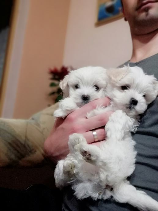Prodajem cistokrvno musko i zensko stene mini maltezera. Vlasnici smo oba roditelja koji su naši kućni ljubimci. Lijepi, zdravi, zaigrani i učeni na kućne uvjete. Čišćeni od parazita i kontrolirani od veterinara u više navrata za što predočimo račune. Štene ce kod preuzimanja biti čipirano i dobivate njegovu putovnicu. Po dogovoru moze biti i cijepljeno protiv zaraznih bolesti. Dugogodisnji smo uzgajivaci registrirani kod ministarstva te garantiramo za svoje pse i pruzamo dozivotnu podrsku. Psi su hranjeni iskljucivo superpremium hranom te uz psa poklanjamo vlastitu knjizicu sa uputama o maltezerima. Roditelji na zadnje tri fotografije. Karlovac. Cijena 500 eura. 0989862986