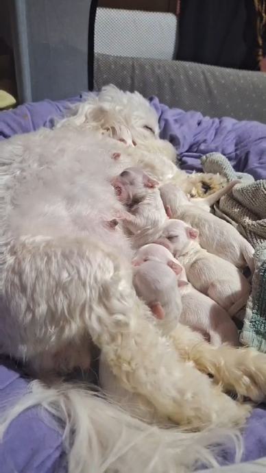 Prodajem mini verziju maltezera, 5 curica 3 decka . Rodjeni su 27.2. Mama i tata su iz kucnog odgoja. Veselih i razigranih roditelja, imaju tek 2 tjedna. Inace su roditelji vegani. Konzmiraju vege keksice iz zooplusa, te kuhamo im povrce tipa carska mijesavina, jedu voce, vole kokosove listice, bademe, orascice... svaki dan imaju obavezno mrkve. Bebice imaju djecji krevet, mazene i pazene su kao i roditelji ... dostupni su 27.4.