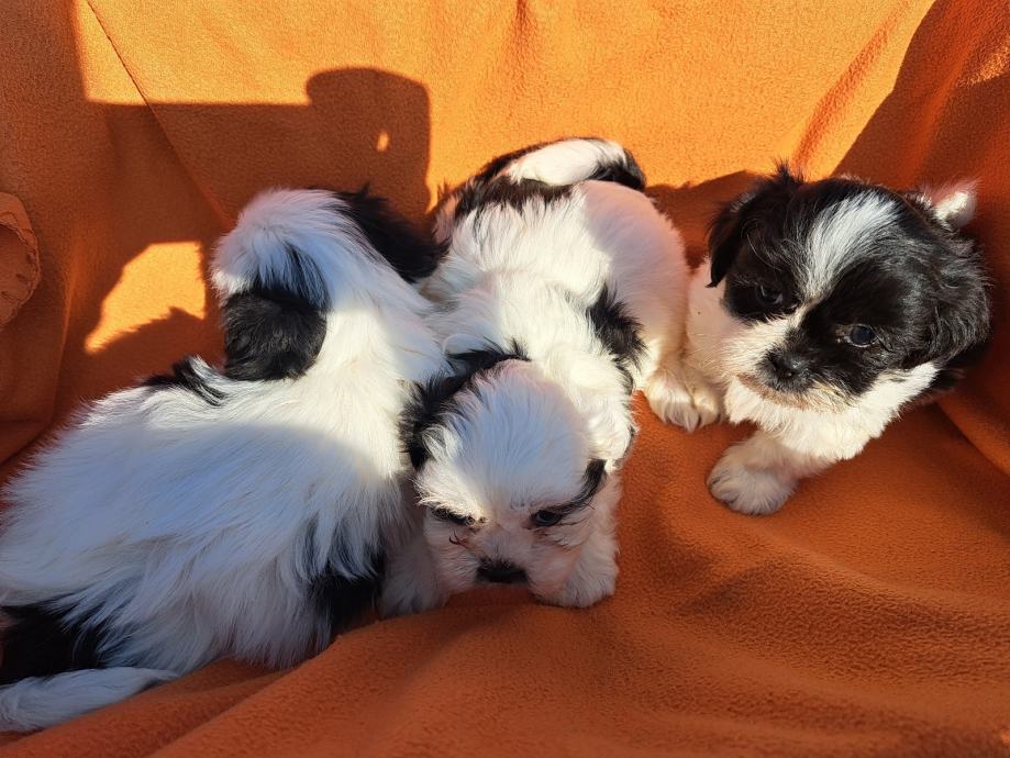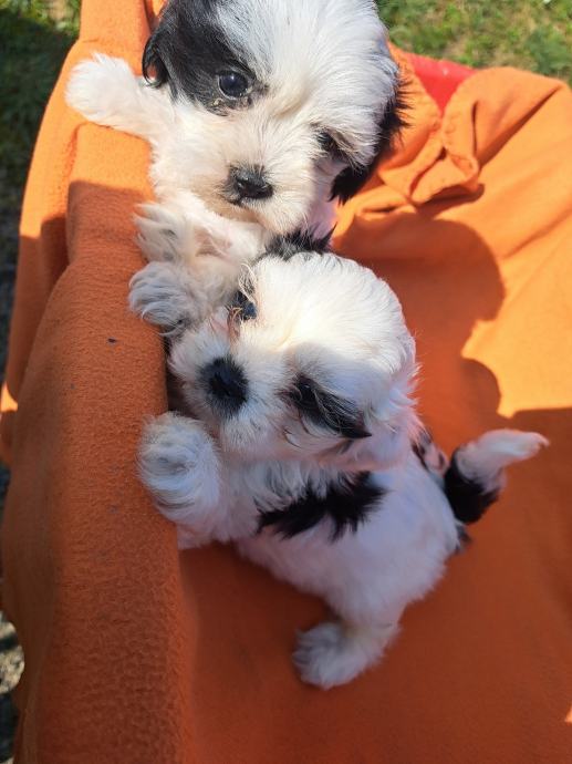 Prodajem štence mini shih-tzu, bijelo-crne boje. Štenci su maleni, preslatki i puni energije. Stari 2mjeseca. Očiščeni od parazita dva puta,dostupne 3 ženke.