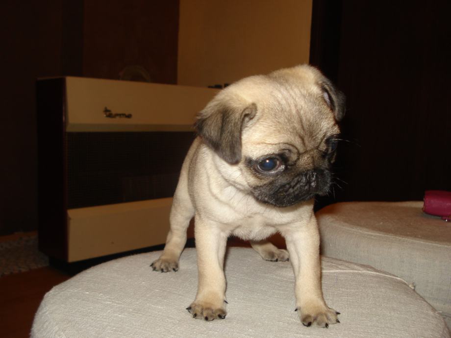 Prodajem štene mopsa, muški, star 2 mjeseca, očišćen, cijepljen, upisano u knjižicu, bež boje, Koprivnica