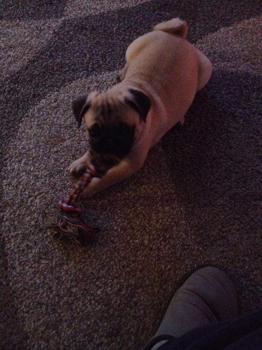 Prodajem prekrasnog čistokrvnog muškog štenca mopsa zbog nemogućnosti držanja. Oštenjen je 5.12.2014. Obožava djecu, druge pse i mačke. Živi u stanu, naučen da obavlja nuždu vani. Cijepljen i očišćen od parazita, ostaje samo cijepljenje protiv bjesnoće i čipiranje što se vidi iz putovnice. Uz psa dajem 4 kg Royal Canin hrane za štence, poslastice za dresiranje, oprsnicu, povodac, šampon za kupanje (korišten jednom), kapi i sprej za učenje gdje treba obavljati nuždu, četku za češljanje, zdjelice i par igračaka. Na zahtjev šaljem još slika. Cijena nije fiksna. Možete me kontaktirati i putem Whatsapp-a.
