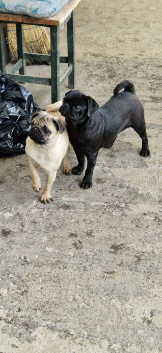 Prodajem dva crna mopsa musko i zensko i krem zenku 6mj stare iz prijavitog i kontroliranog uzgoja putovnica sve vakcine i za bjesnocu imaju