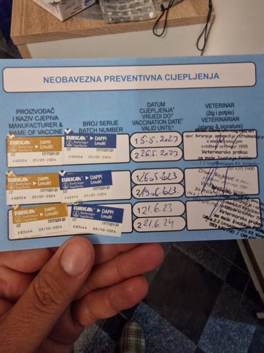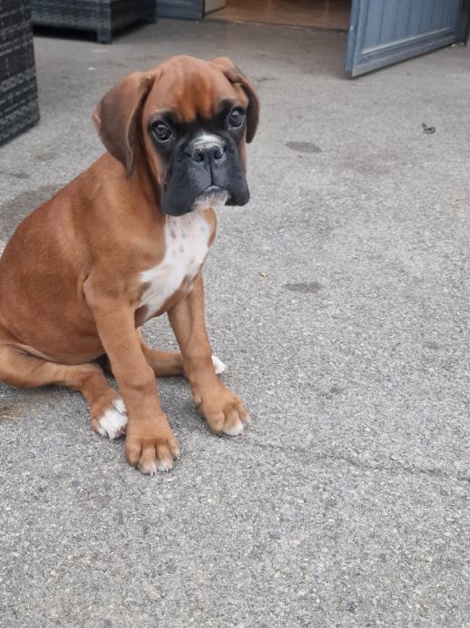 Prodajem ženku njemačkog boxera oštenjena 20.3. tri puta cijepljena protiv šteničnjaka i ima svoj karton od veterinara više puta čiščena od crijevnih parazita spremna za novi dom
