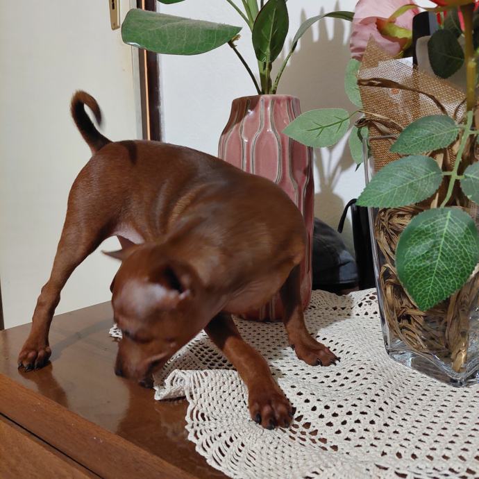 Prodajem 2 štenca patuljastog pinča stari 3 mjeseca, cjepljeni , smeđe boje.