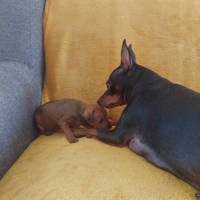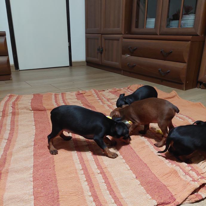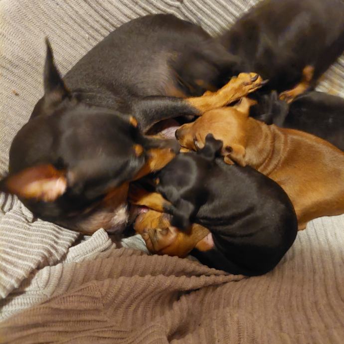 Patuljasti pinčevi ,oštenjeni 14.3.2023., spremni za preuzimanje.