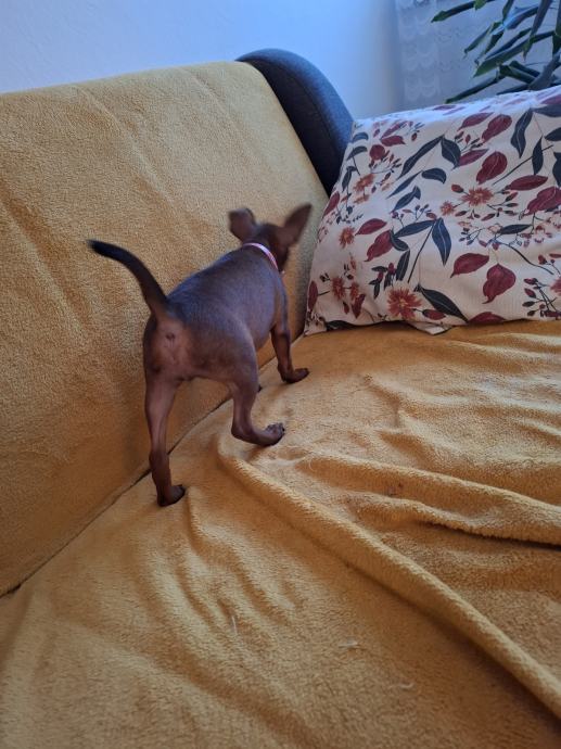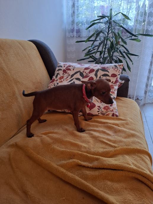 Hitno prodajem žensko štene patuljastog pinča, oštenjeno 5.4.2025.